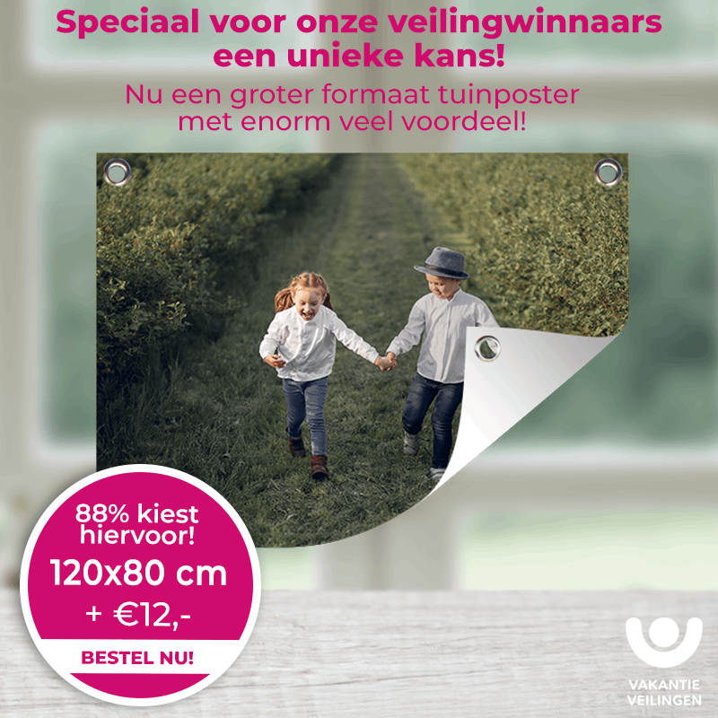 - Je mag kiezen voor een groter formaat; de waarde van de code (€ 100,00) wordt met het totaalbedrag verrekend.